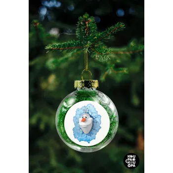 Frozen Olaf, Στολίδι Χριστουγεννιάτικη μπάλα δένδρου διάφανη με πράσινο γέμισμα 8cm