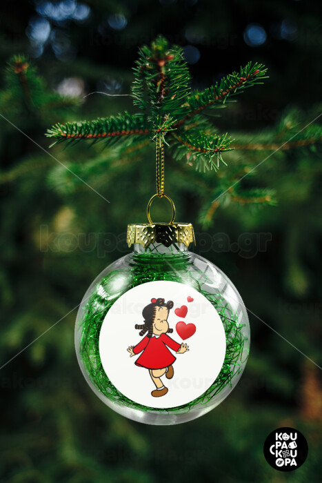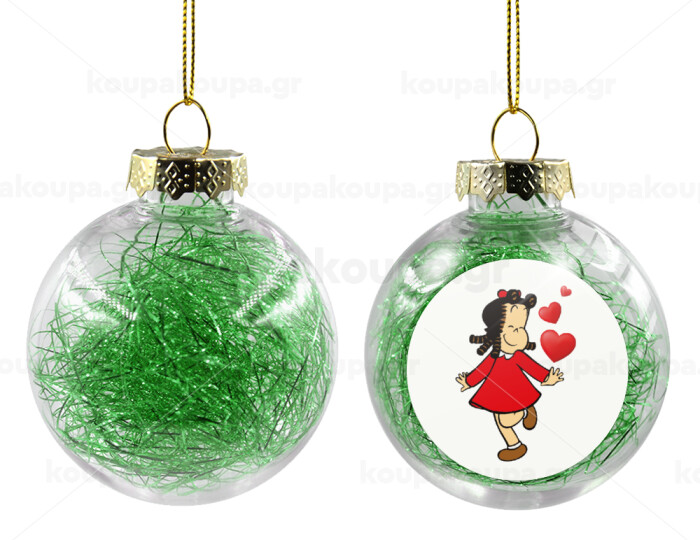 Η μικρή Λουλού, Στολίδι Χριστουγεννιάτικη μπάλα δένδρου διάφανη με πράσινο γέμισμα 8cm