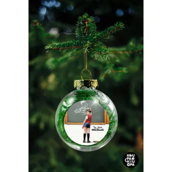 Le Petit Nicolas, Στολίδι Χριστουγεννιάτικη μπάλα δένδρου διάφανη με πράσινο γέμισμα 8cm
