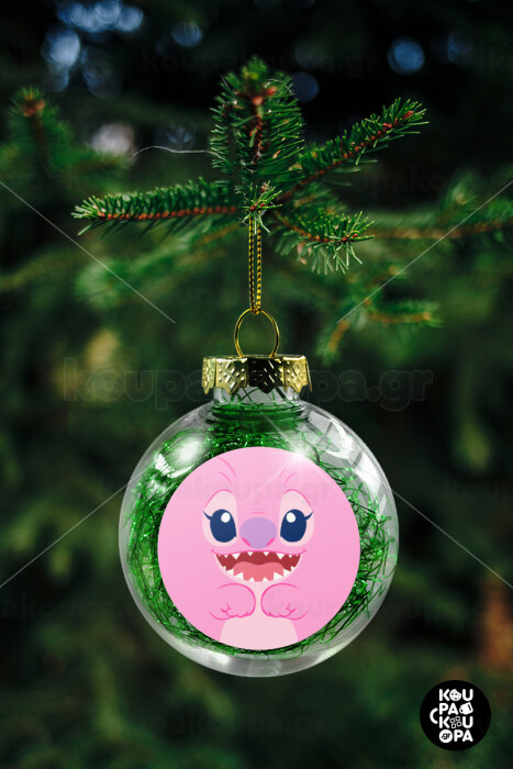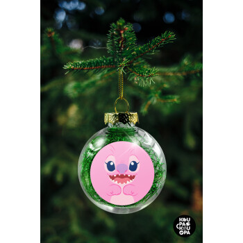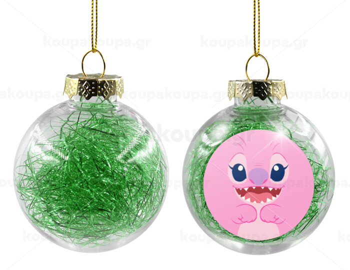 Lilo & Stitch Angel pink, Στολίδι Χριστουγεννιάτικη μπάλα δένδρου διάφανη με πράσινο γέμισμα 8cm