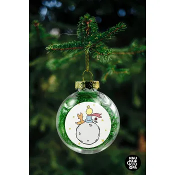 Little prince, Στολίδι Χριστουγεννιάτικη μπάλα δένδρου διάφανη με πράσινο γέμισμα 8cm
