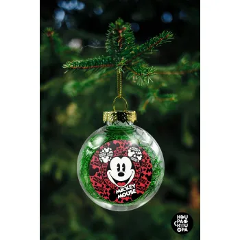 Mickey Mouse, Στολίδι Χριστουγεννιάτικη μπάλα δένδρου διάφανη με πράσινο γέμισμα 8cm