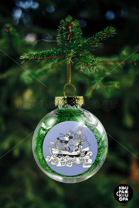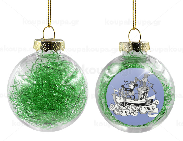 Mickey steamboat, Στολίδι Χριστουγεννιάτικη μπάλα δένδρου διάφανη με πράσινο γέμισμα 8cm