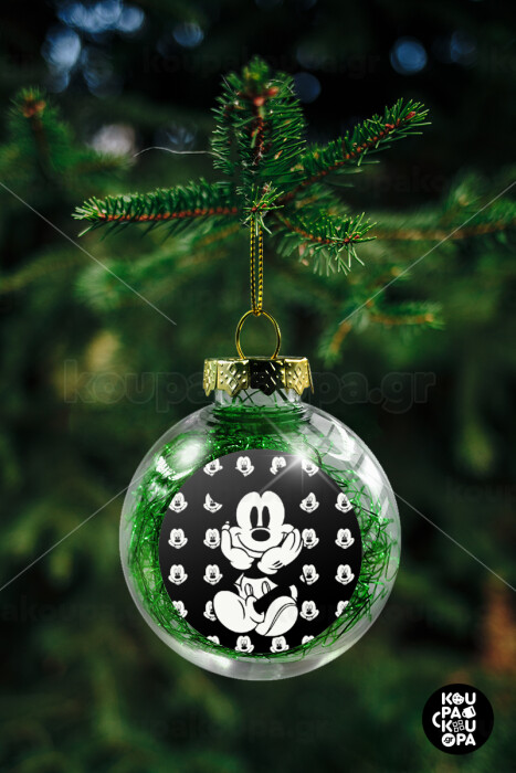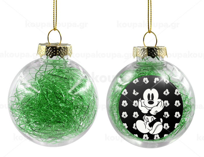 Mickey, Στολίδι Χριστουγεννιάτικη μπάλα δένδρου διάφανη με πράσινο γέμισμα 8cm
