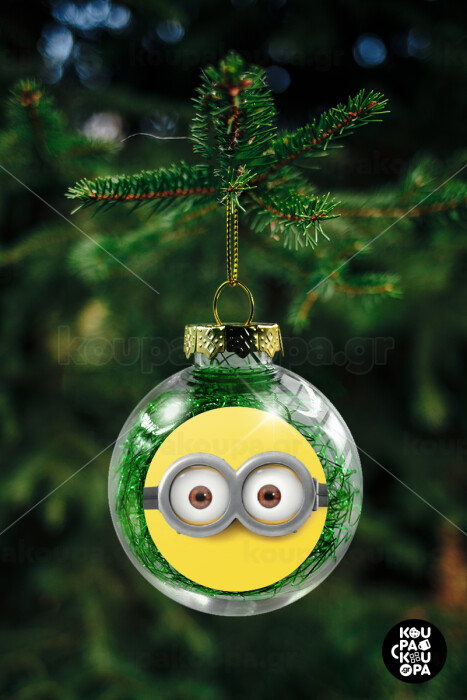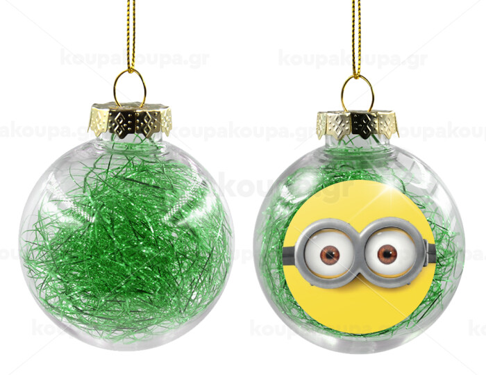 Minions, Στολίδι Χριστουγεννιάτικη μπάλα δένδρου διάφανη με πράσινο γέμισμα 8cm