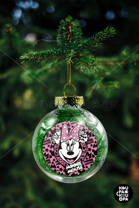 Minnie mouse, Στολίδι Χριστουγεννιάτικη μπάλα δένδρου διάφανη με πράσινο γέμισμα 8cm