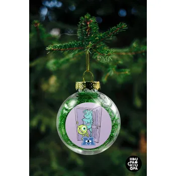 Monster inc, Στολίδι Χριστουγεννιάτικη μπάλα δένδρου διάφανη με πράσινο γέμισμα 8cm