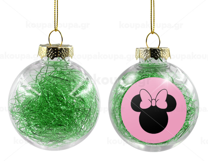 mouse girl, Στολίδι Χριστουγεννιάτικη μπάλα δένδρου διάφανη με πράσινο γέμισμα 8cm