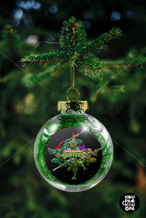 Ninja turtles, Στολίδι Χριστουγεννιάτικη μπάλα δένδρου διάφανη με πράσινο γέμισμα 8cm