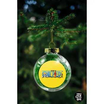 Onepiece logo, Στολίδι Χριστουγεννιάτικη μπάλα δένδρου διάφανη με πράσινο γέμισμα 8cm
