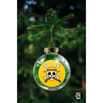Onepiece skull, Στολίδι Χριστουγεννιάτικη μπάλα δένδρου διάφανη με πράσινο γέμισμα 8cm