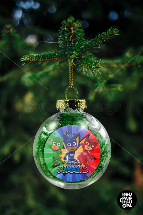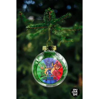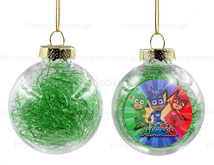 PJ masks, Στολίδι Χριστουγεννιάτικη μπάλα δένδρου διάφανη με πράσινο γέμισμα 8cm