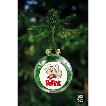 Popeye the sailor man, Στολίδι Χριστουγεννιάτικη μπάλα δένδρου διάφανη με πράσινο γέμισμα 8cm