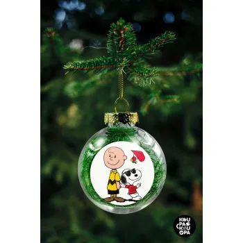 Snoopy & Joe, Στολίδι Χριστουγεννιάτικη μπάλα δένδρου διάφανη με πράσινο γέμισμα 8cm