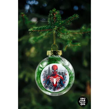 Spiderman City, Στολίδι Χριστουγεννιάτικη μπάλα δένδρου διάφανη με πράσινο γέμισμα 8cm