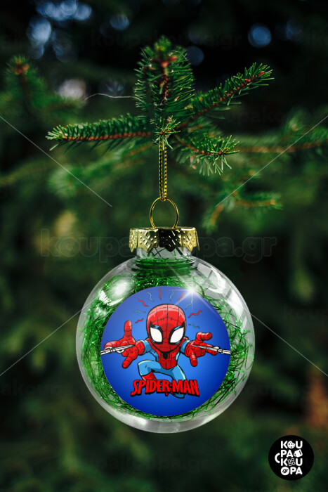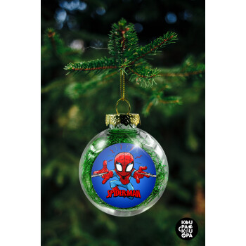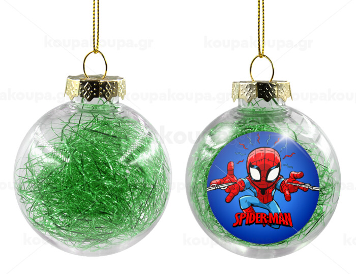 Spiderman flying, Στολίδι Χριστουγεννιάτικη μπάλα δένδρου διάφανη με πράσινο γέμισμα 8cm