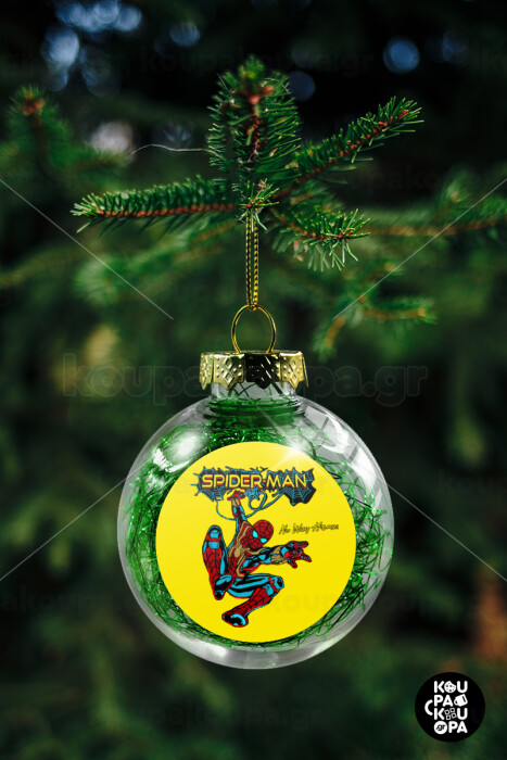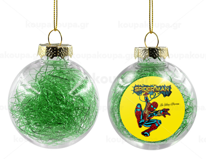 Spiderman no way home, Στολίδι Χριστουγεννιάτικη μπάλα δένδρου διάφανη με πράσινο γέμισμα 8cm