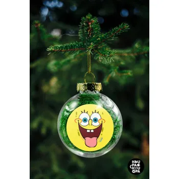 Μπομπ Σφουγγαράκης χαμόγελο, Στολίδι Χριστουγεννιάτικη μπάλα δένδρου διάφανη με πράσινο γέμισμα 8cm