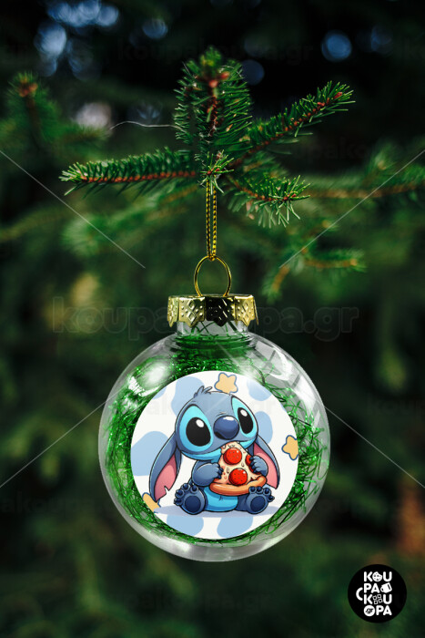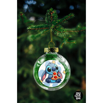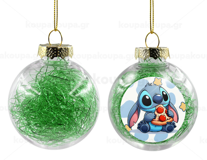 Stitch Pizza, Στολίδι Χριστουγεννιάτικη μπάλα δένδρου διάφανη με πράσινο γέμισμα 8cm
