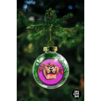 Taz, Στολίδι Χριστουγεννιάτικη μπάλα δένδρου διάφανη με πράσινο γέμισμα 8cm