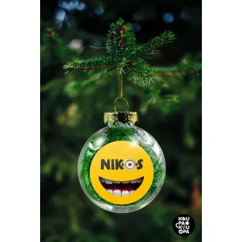 The minions, Στολίδι Χριστουγεννιάτικη μπάλα δένδρου διάφανη με πράσινο γέμισμα 8cm