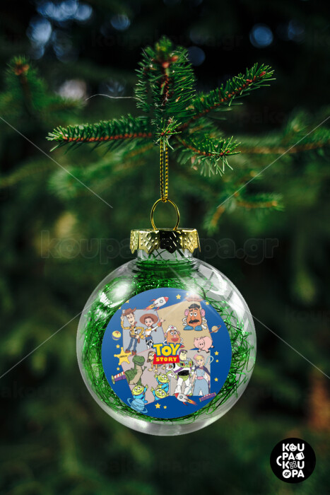 toystory characters, Στολίδι Χριστουγεννιάτικη μπάλα δένδρου διάφανη με πράσινο γέμισμα 8cm
