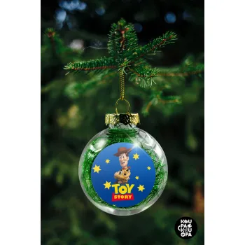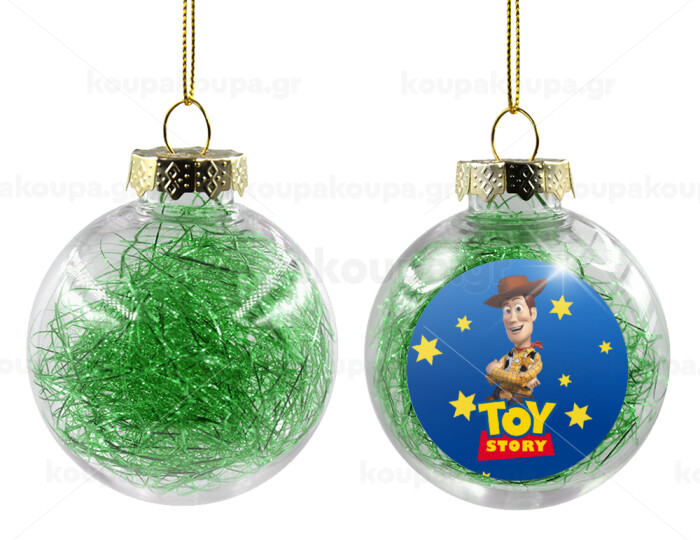 Woody cowboy, Στολίδι Χριστουγεννιάτικη μπάλα δένδρου διάφανη με πράσινο γέμισμα 8cm