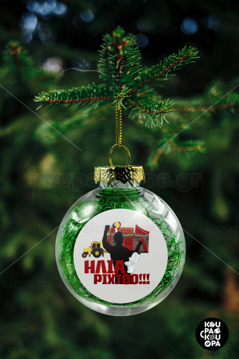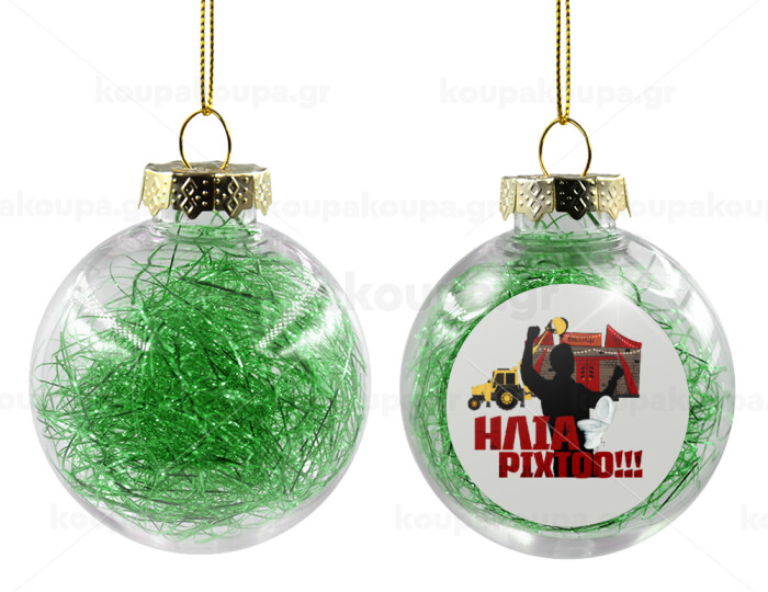 Ηλία ρίχτο!, Στολίδι Χριστουγεννιάτικη μπάλα δένδρου διάφανη με πράσινο γέμισμα 8cm
