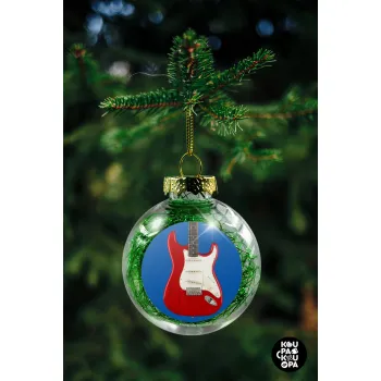 Guitar stratocaster, Στολίδι Χριστουγεννιάτικη μπάλα δένδρου διάφανη με πράσινο γέμισμα 8cm