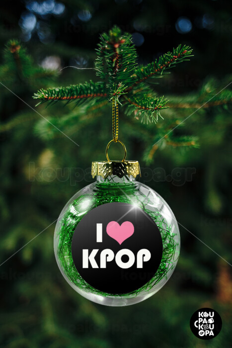 I Love KPOP, Στολίδι Χριστουγεννιάτικη μπάλα δένδρου διάφανη με πράσινο γέμισμα 8cm