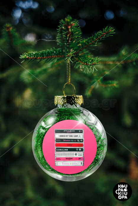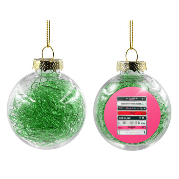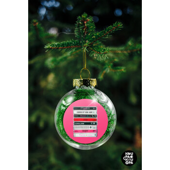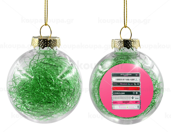 Maneskin Cassette, Στολίδι Χριστουγεννιάτικη μπάλα δένδρου διάφανη με πράσινο γέμισμα 8cm