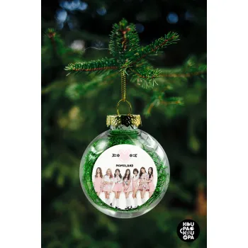 Momoland pink, Στολίδι Χριστουγεννιάτικη μπάλα δένδρου διάφανη με πράσινο γέμισμα 8cm