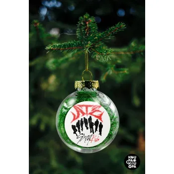 Stray Kids Boy band, Στολίδι Χριστουγεννιάτικη μπάλα δένδρου διάφανη με πράσινο γέμισμα 8cm