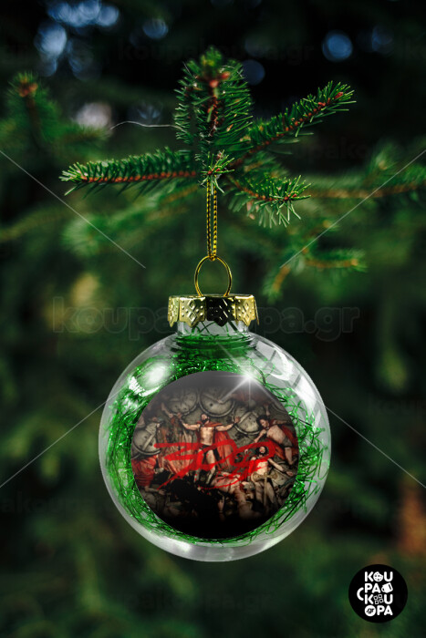 300 the spartans, Στολίδι Χριστουγεννιάτικη μπάλα δένδρου διάφανη με πράσινο γέμισμα 8cm