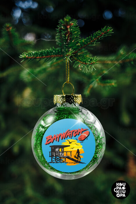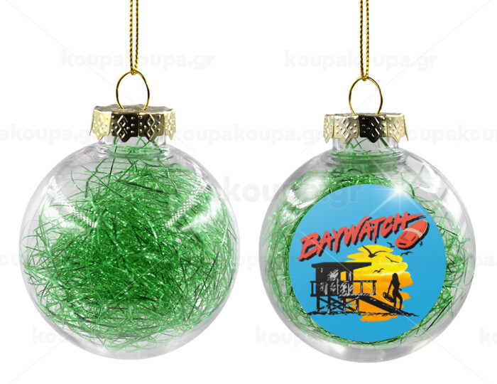 Baywatch, Στολίδι Χριστουγεννιάτικη μπάλα δένδρου διάφανη με πράσινο γέμισμα 8cm
