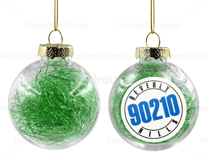 Beverly Hills, 90210, Στολίδι Χριστουγεννιάτικη μπάλα δένδρου διάφανη με πράσινο γέμισμα 8cm