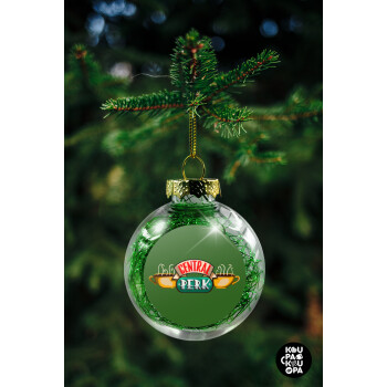 Central perk, Στολίδι Χριστουγεννιάτικη μπάλα δένδρου διάφανη με πράσινο γέμισμα 8cm