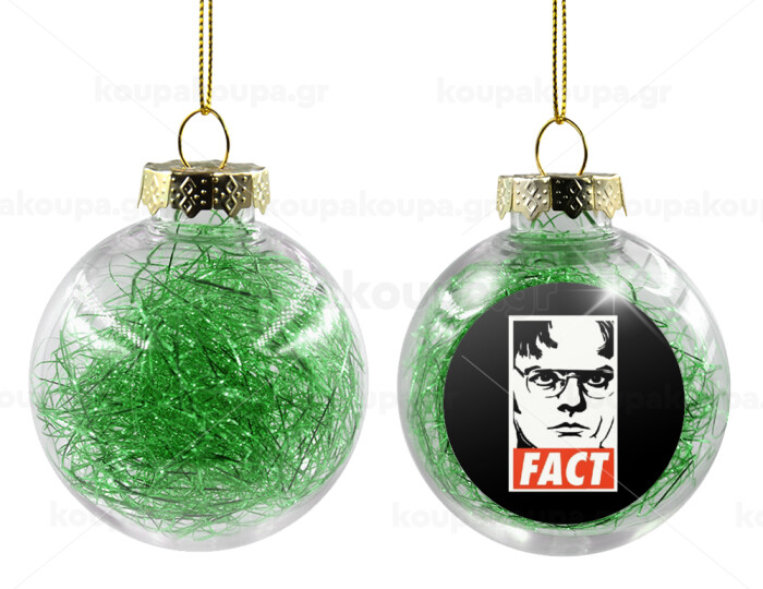 Dunder Mifflin FACT, Στολίδι Χριστουγεννιάτικη μπάλα δένδρου διάφανη με πράσινο γέμισμα 8cm