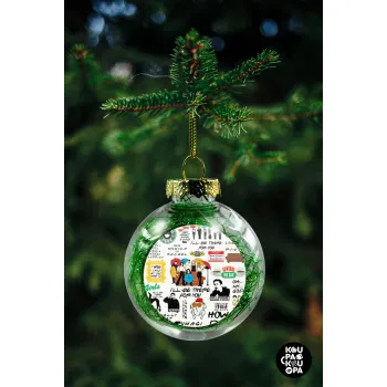 Friends, Στολίδι Χριστουγεννιάτικη μπάλα δένδρου διάφανη με πράσινο γέμισμα 8cm