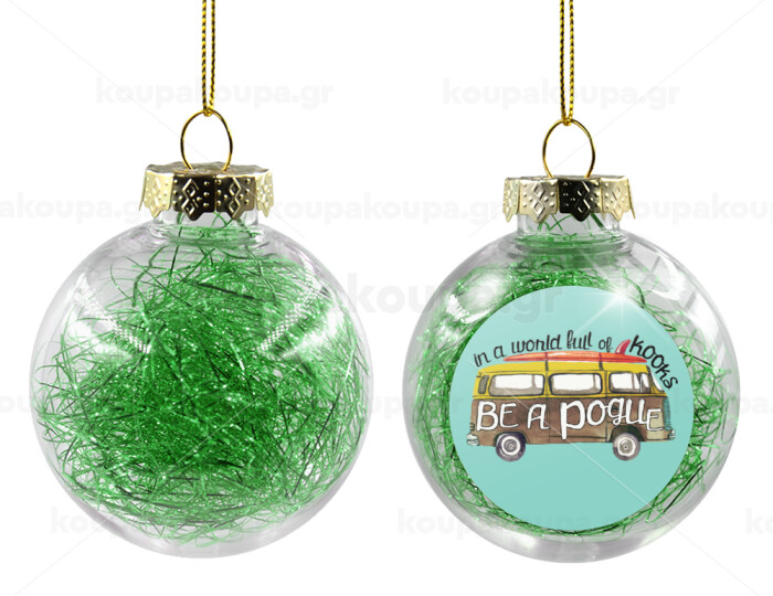 Outerbanks Pogue Life, Στολίδι Χριστουγεννιάτικη μπάλα δένδρου διάφανη με πράσινο γέμισμα 8cm