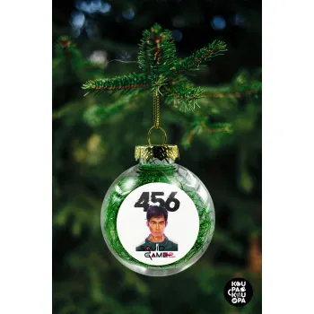 Squid game 456 Gi-Hun, Στολίδι Χριστουγεννιάτικη μπάλα δένδρου διάφανη με πράσινο γέμισμα 8cm