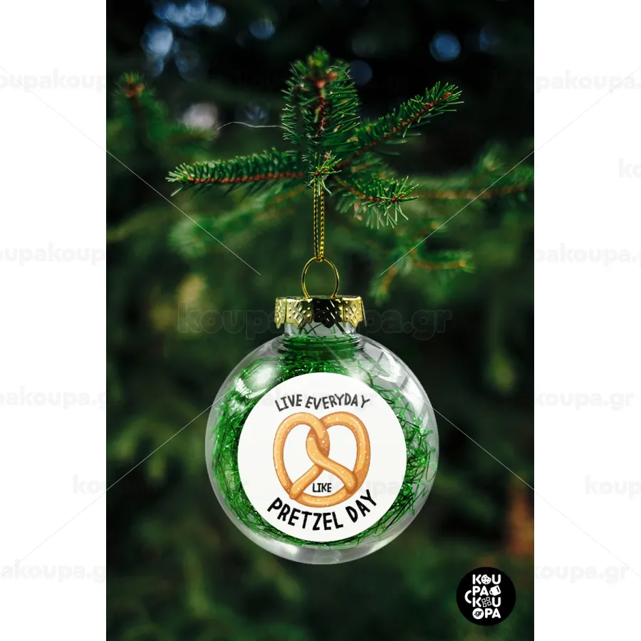 The office, Live every day like pretzel day, Στολίδι Χριστουγεννιάτικη μπάλα δένδρου διάφανη με πράσινο γέμισμα 8cm