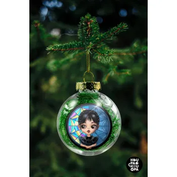 Wednesday big eyes, Στολίδι Χριστουγεννιάτικη μπάλα δένδρου διάφανη με πράσινο γέμισμα 8cm