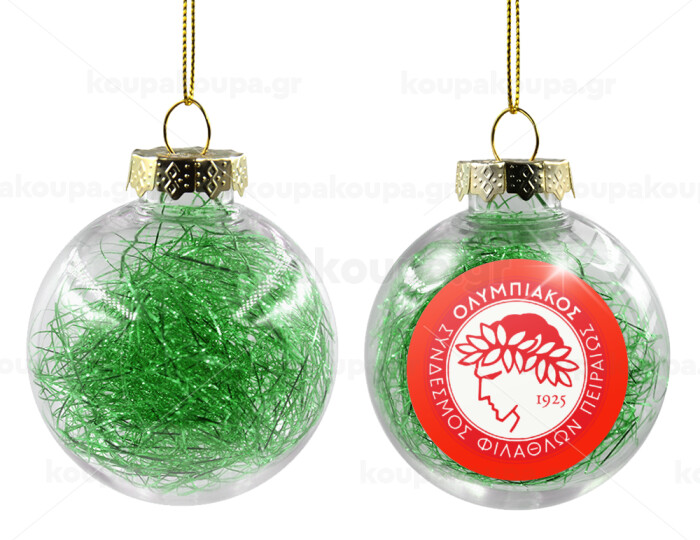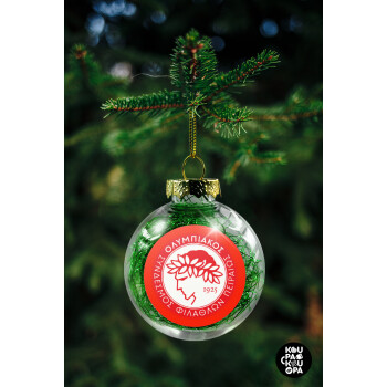 Ολυμπιακός, Στολίδι Χριστουγεννιάτικη μπάλα δένδρου διάφανη με πράσινο γέμισμα 8cm