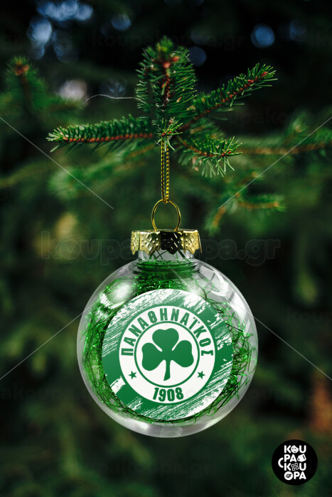 Π.Α.Ο., Στολίδι Χριστουγεννιάτικη μπάλα δένδρου διάφανη με πράσινο γέμισμα 8cm