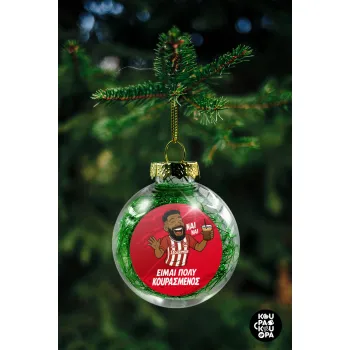 Ροντινέι, "ΠΟΛΥ ΚΟΥΡΑΣΜΕΝΟΣ", Στολίδι Χριστουγεννιάτικη μπάλα δένδρου διάφανη με πράσινο γέμισμα 8cm