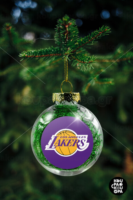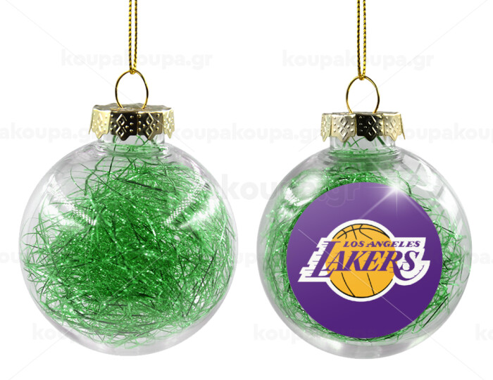 Lakers, Στολίδι Χριστουγεννιάτικη μπάλα δένδρου διάφανη με πράσινο γέμισμα 8cm