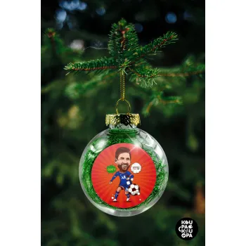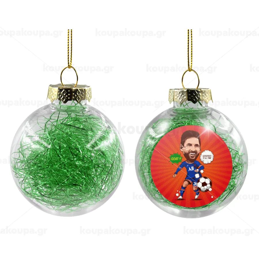Lionel Messi drawing, Στολίδι Χριστουγεννιάτικη μπάλα δένδρου διάφανη με πράσινο γέμισμα 8cm
