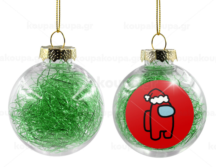 Among US Santa, Στολίδι Χριστουγεννιάτικη μπάλα δένδρου διάφανη με πράσινο γέμισμα 8cm