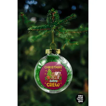 Christmas Cookie Baking Crew, Στολίδι Χριστουγεννιάτικη μπάλα δένδρου διάφανη με πράσινο γέμισμα 8cm